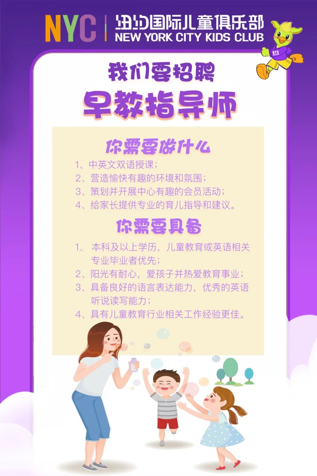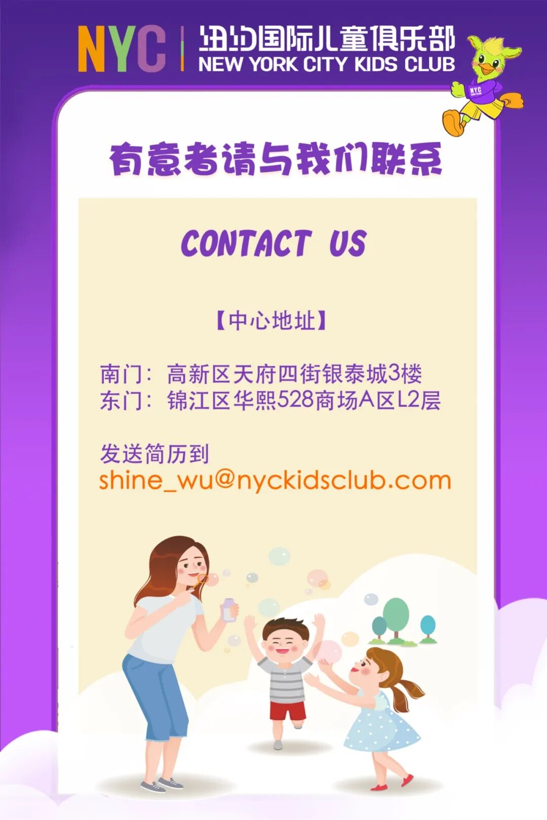 首页 > 中心资讯>NYC纽约国际成都早教中心:NYC成都中心招聘啦!加入我们为梦想起航!