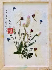草纸是一种源于非常古老的手工造纸制作出的纸张,在未干的纸浆上直接铺就花草,经特殊处理和自然烘干而成,每一张有独一无二美丽的细纹,纯天然的压花。