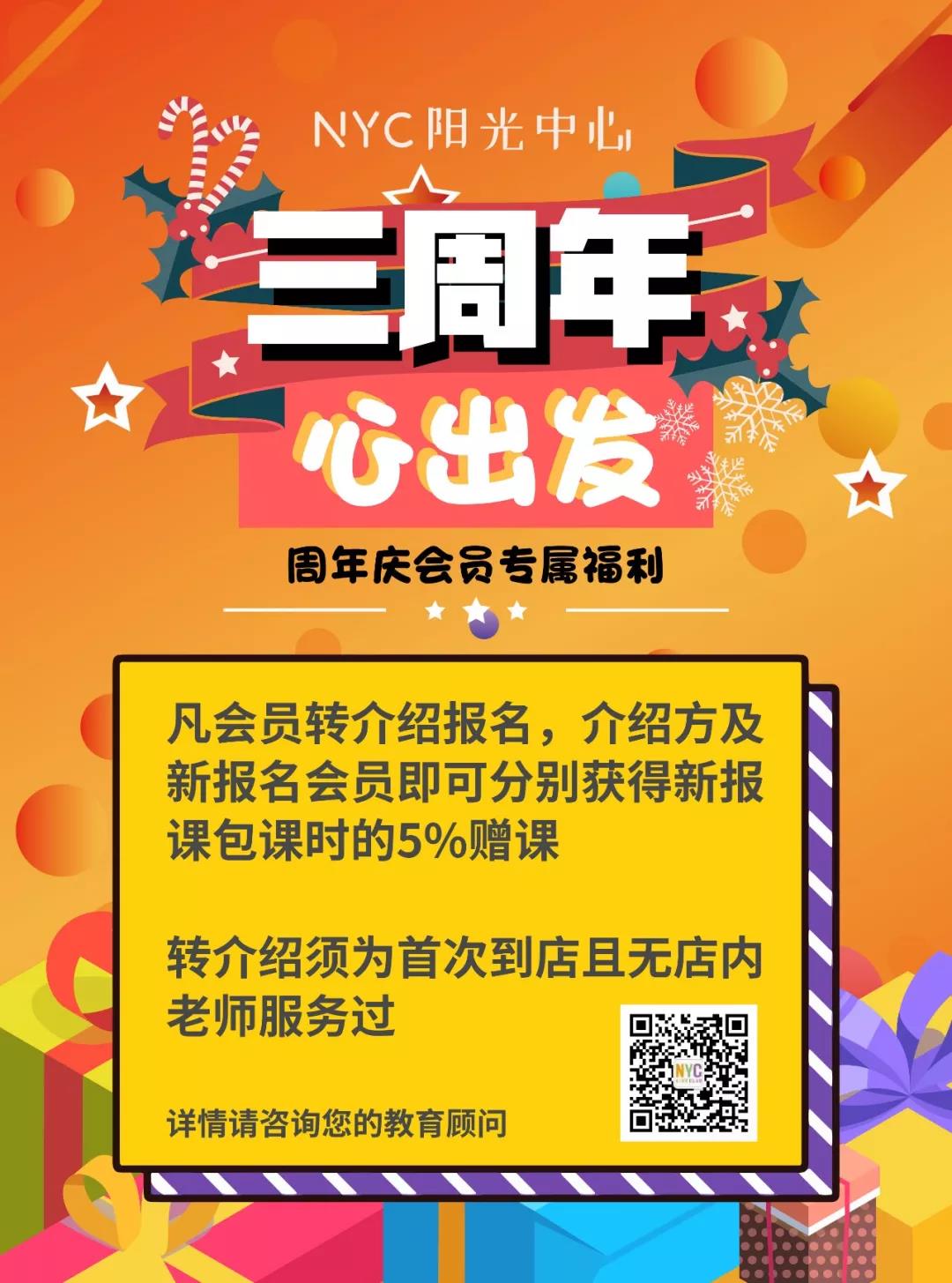 首页 > 中心资讯>『三周年·心出发』NYC阳光中心三周年庆重磅福利!