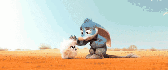 ▲一边是自己辛苦寻来的食物,一边是素不相识的,一个幼小生命,本不想多管闲事的Bilby,还是选择了丢掉食物,抱起幼鸟逃命。