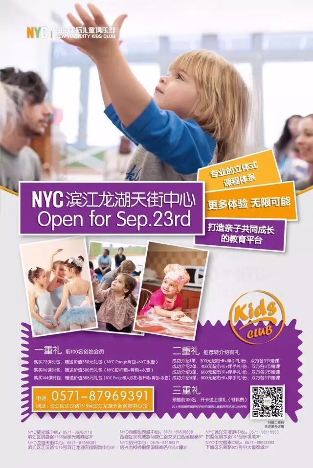 所有教室免费为每一位NYC会员宝宝开放。