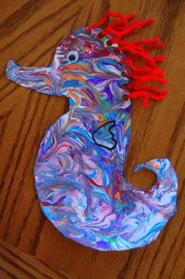 使用材料: 纸盘、意大利面、毛线、剃须泡、塑料针、海洋生物玩具