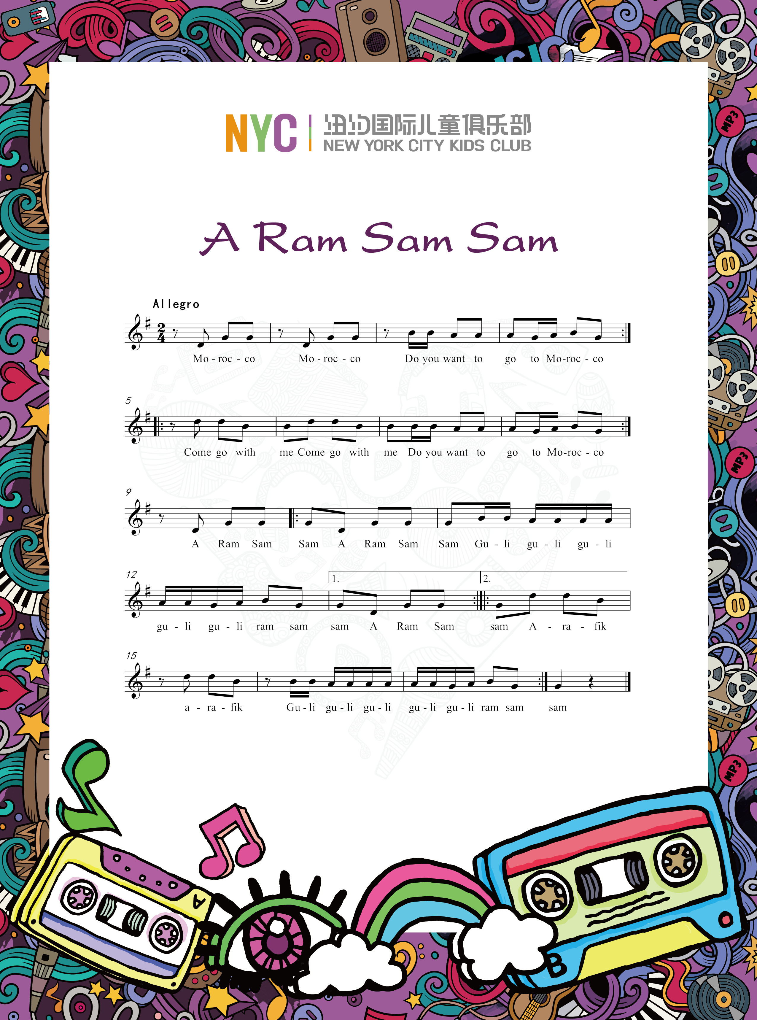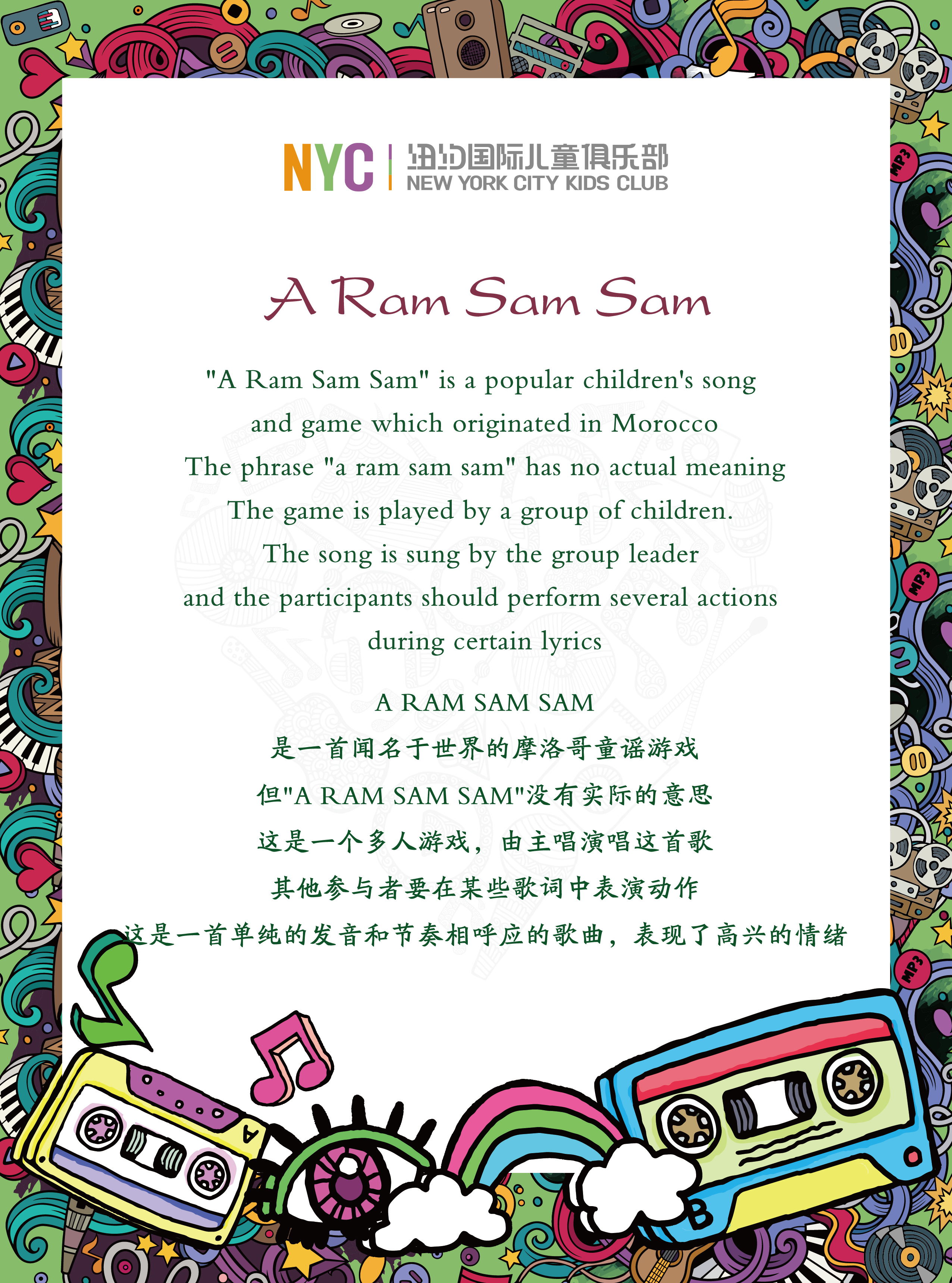 精选NYC最受孩子欢迎的世界童谣,朗朗上口,易于吟唱,让孩子在歌声中认识世界