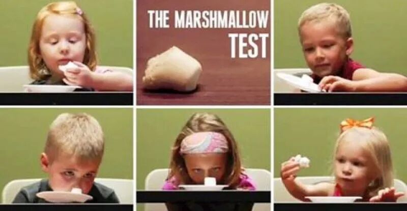 让每个孩子单独待在小房间里,桌上放着棉花糖等零食,孩子们被告知可以立即吃掉托盘里放食物,但十五分钟后再吃,还可以得到另一份。